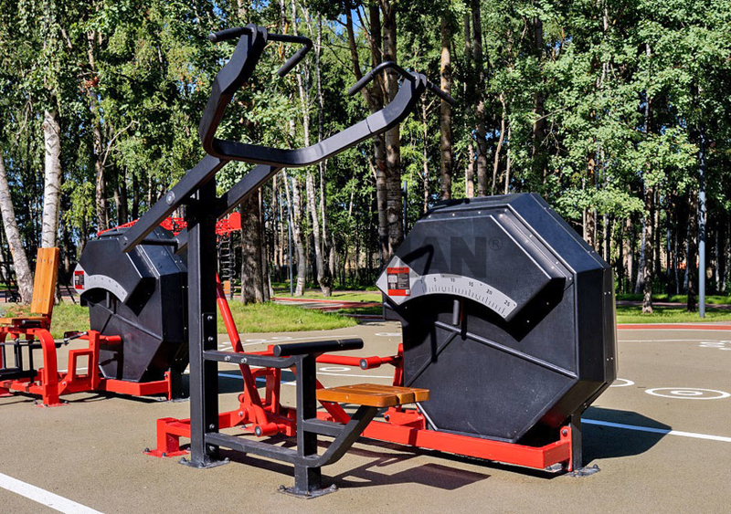 Уличный тренажер FC-13 предназначен для выполнения упражнения разведение ног в положении сидя для тренировки мышц внешней поверхности бедра: большая ягодичная мышца, средняя ягодичная мышца, грушевидная мышца, мышца натягивающая широкую фасцию.
