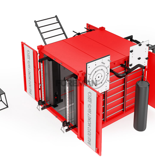 - Адаптированный бокс контейнерного типа с системой хранения и перемещения оборудования, служащего для транспортировки всех составных элементов комплекса и хранения оборудования, а также являющимся основным конструктивным элементом комплекса в состоянии для эксплуатации;