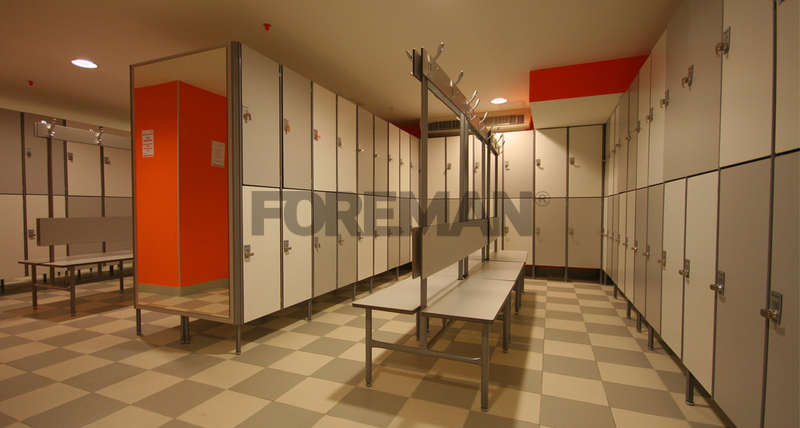 Интерьер клуба выполнен в стиле цветовой геометрии - многообразие цветов и геометрических фигур. Для того, чтобы мебель органично выписывалась в интерьер клуба, специалисты «ФОРМАН Продактс» разработали индивидуальный дизайн мебели для раздевалок с нестандартным цветовым решением. Клуб оснащен односекционными и двухцекционными шкафами, а также скамьями и скамьями с вешалкой.