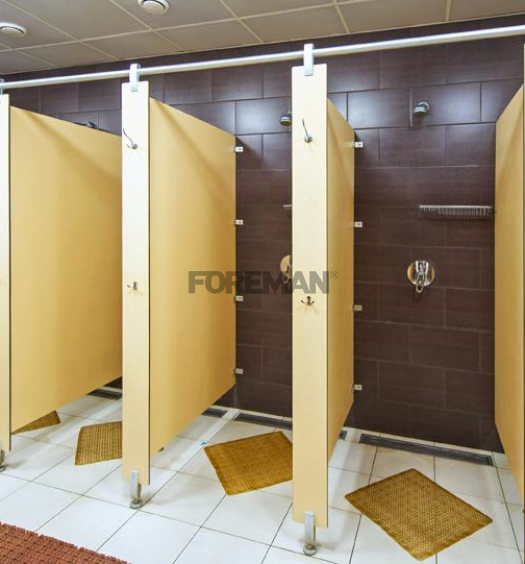 Душевые комнаты центра оснащены душевыми перегородками FOREMAN®, а в уборных установлены сантехнические кабинки.