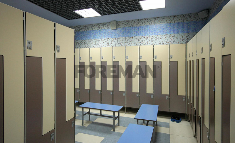 «ФОРМАН Продактс» оснастил клуб мебелью для раздевалок из HPL пластика. В раздевалках установлены Z-образные шкафы и скамьи.